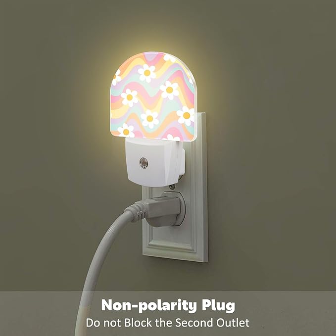 Groovy Hippie Daisies Flowers Night Light for Kids,Retro Rainbow Wavy Floral Night Light Plug in with Dusk to Dawn Sensor,0.5w Energy Saving Nightlight for Hallway Stairway Kitchen Bedroom