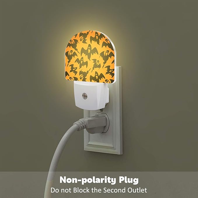 Spooky Halloween Ghosts Night Light, Black Orange Ghosts Dusk to Dawn Night Light Plug in,0.5w Energy Saving Sleep Friendly NightLight for Kids Boys Girls Home Decor