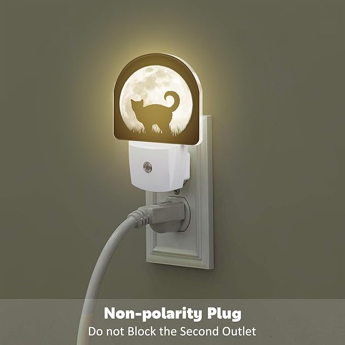 Cat on Moon Night Light, Full Moon Black Cat Dusk to Dawn Night Light Plug in, 0.5w Energy Saving Sleep Friendly NightLight for Kids Boys Girls Home Decor