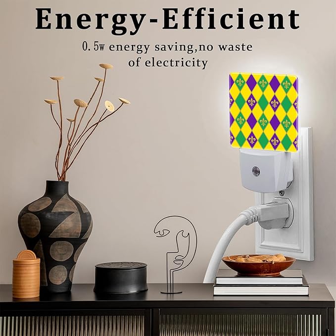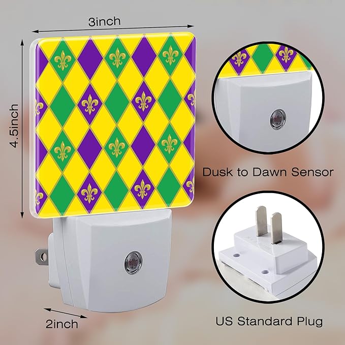 Mardi Gras Carnival Night Light, Colorful Fleur-de-lis Dusk to Dawn Night Light Plug in, 0.5w Energy Saving Sleep Friendly NightLight for Kids Boys Girls Home Decor