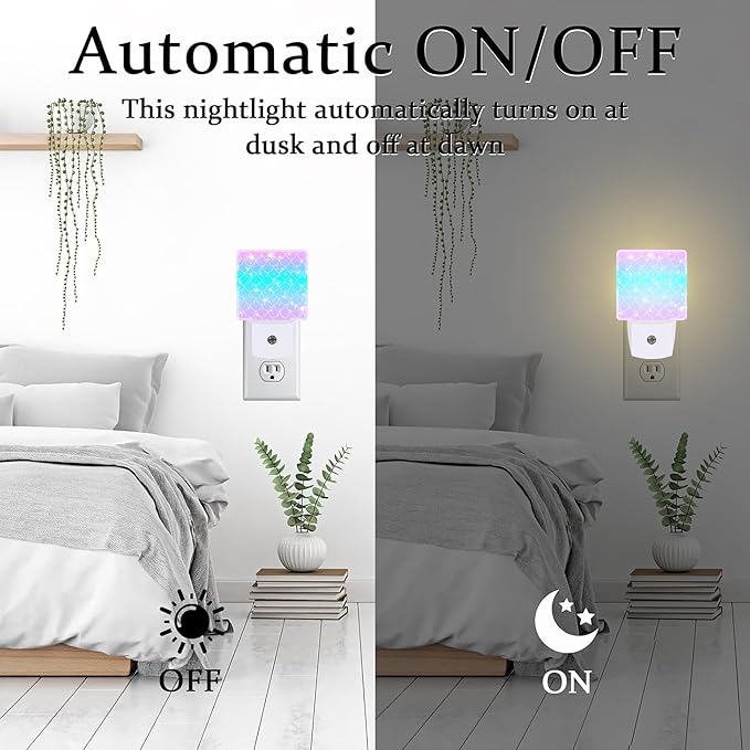 - Automatic Light Sensor: This night light has a built-in light sensor, it will work automatically according to dusk to dawn. Lighting up at dusk and turning off at dawn. What's more, it will work automatically based on the lights in the room, no need to turn it on or off manually