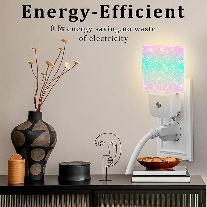 Pink Teal Mermaid Scales Night Light, Rainbow Glitter Fish Scale Dusk to Dawn Night Light Plug in,0.5w Energy Saving Sleep Friendly NightLight for Kids Boys Girls Home Decor