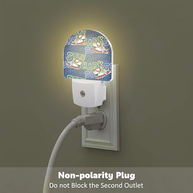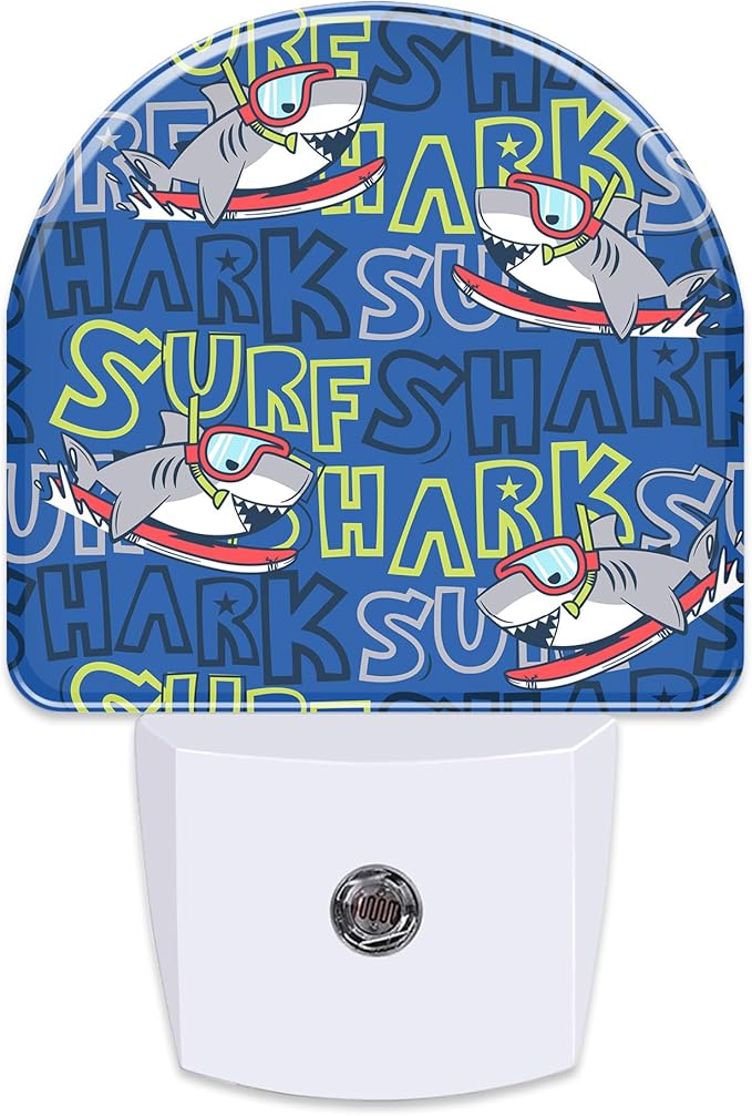 Cartoon Surfing Sharks Night Light, Cool Cute Shark Dusk to Dawn Night Light Plug in,0.5w Energy Saving Sleep Friendly Nightlights for Kids Boys Girls Home Decor