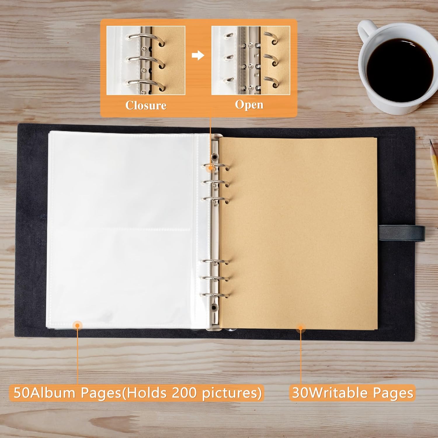 - 【Large Capacity Photo Picture Album】✨ Holds 200 4 x 6 photos pictures. This album contains 50 clear PVC pages with 2 photo pockets per side (4 photo pockets per page), and give away 30 writable pieces of paper on which you can record the story of the picture.