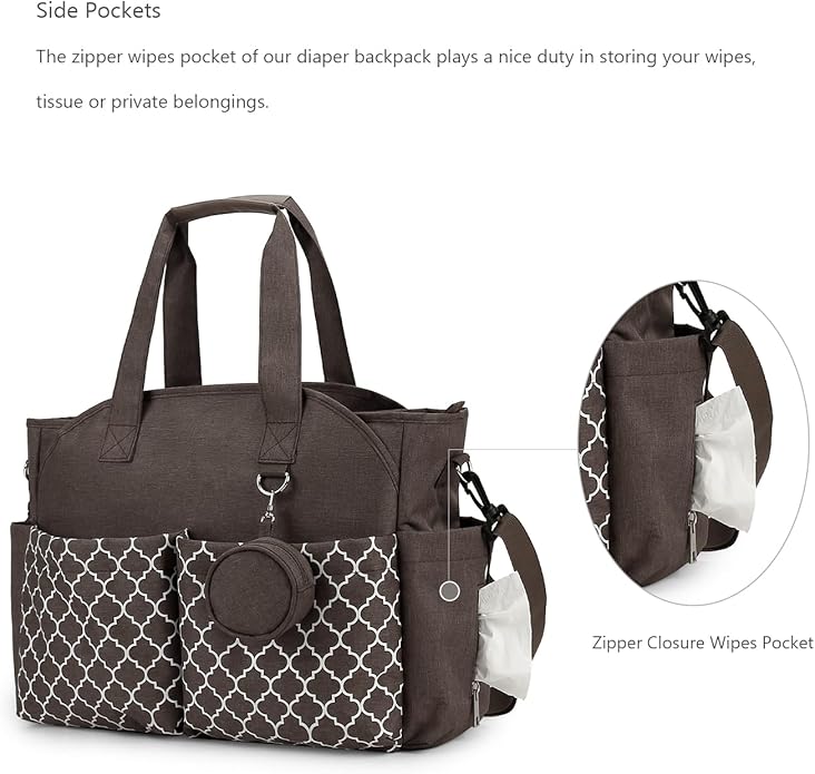 - 【Multi-function】:Everything is still easy access and convenient to put away, organized space for mom and baby, separate pockets for not only nappy, nursing cover, and wipes, but also for your wallet, keys, sunglasses, and other toiletries.