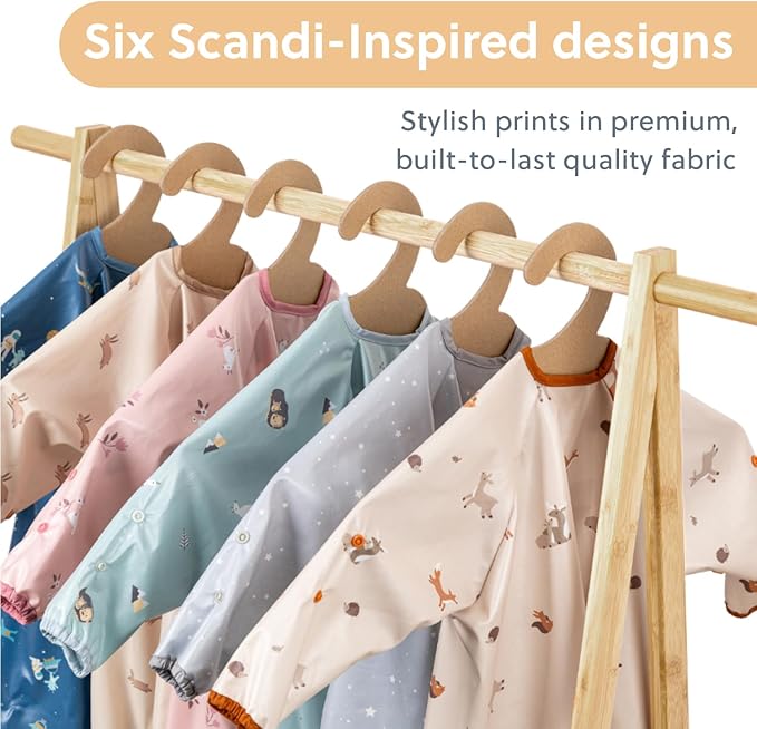 - Premium Waterproof Smock Bib: Our bibs are crafted for convenience, featuring soft, lightweight, water-repellent fabric to protect your baby's clothes during meal times and messy activities. Designed with a special waterproof coating for dryness and comfort.