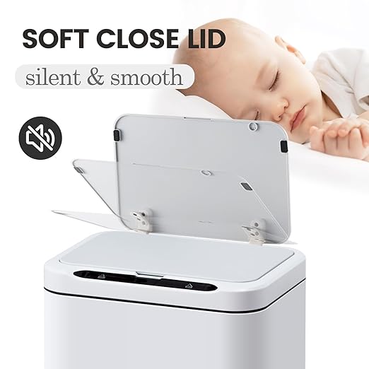 - Touchless, Motion-Sensor Lid: Effortlessly dispose of trash with the built-in infrared sensor that automatically opens the lid when you approach. The lid closes gently and securely after each use, keeping waste out of sight and smells contained. Perfect for hands-free operation when your hands are full or dirty