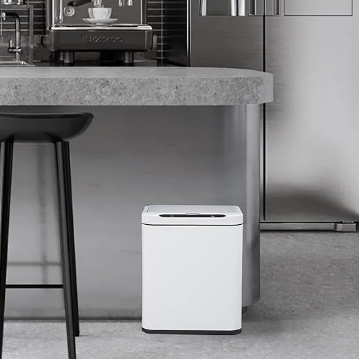 - Touchless, Motion-Sensor Lid: Effortlessly dispose of trash with the built-in infrared sensor that automatically opens the lid when you approach. The lid closes gently and securely after each use, keeping waste out of sight and smells contained. Perfect for hands-free operation when your hands are full or dirty