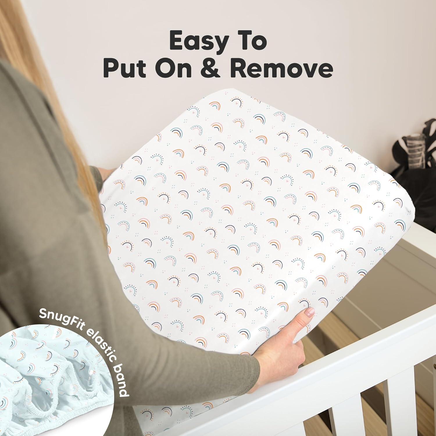 - Easy To Put On - Our baby sheets for crib use SnugFit Tech, a smart fabric knit that stretches effortlessly for quick fitting and removal of the toddler bed sheets. No more struggling with rigid fabric!