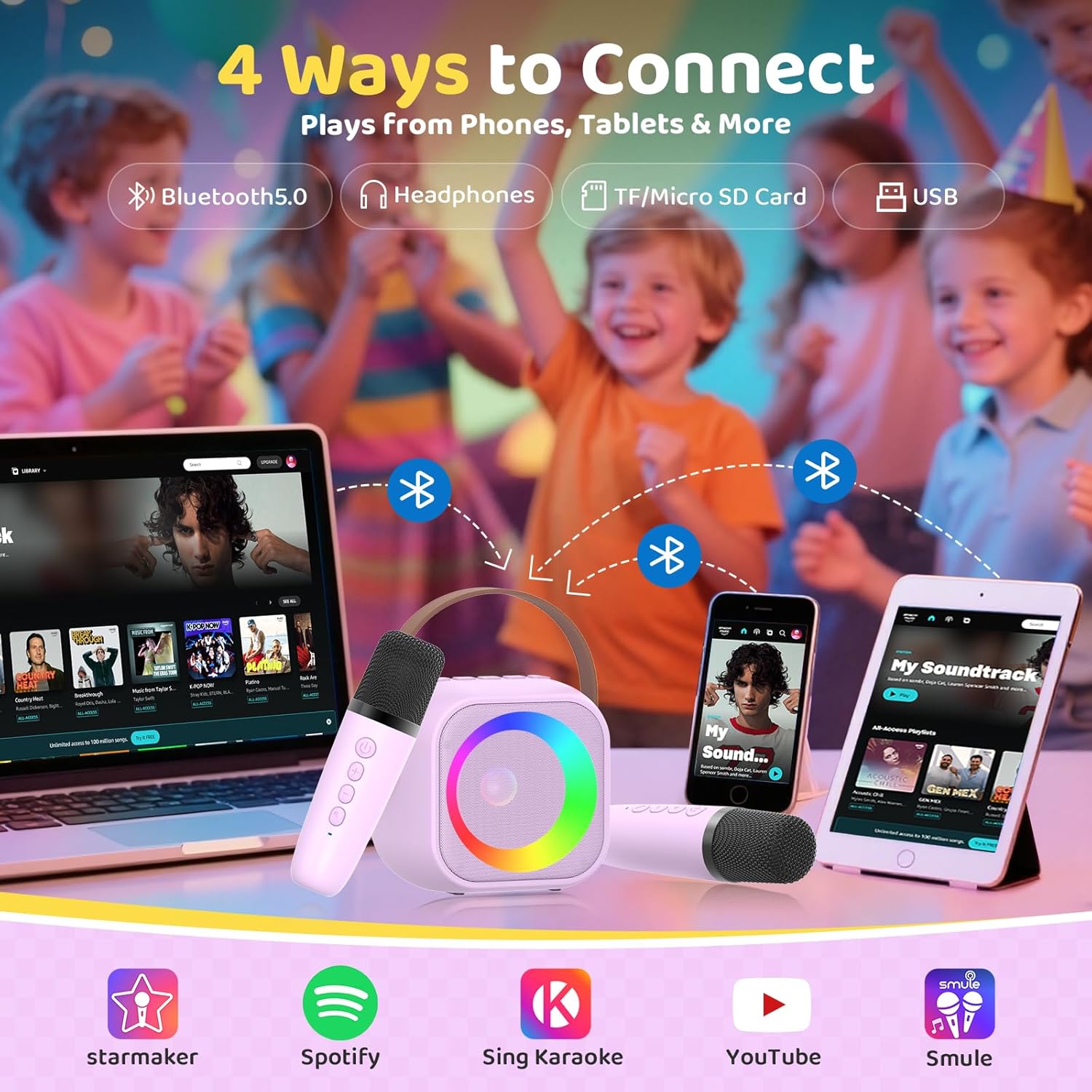 Karaoke Machine for Kids, Toys for 3-12 Years Old Girls Gifts, Kids Karaoke Microphone Machine Toy, Best Fun Christmas Birthday Gifts for 5 6 7 8 9 10 11 Years Teens Girl Boys Purple 2 Mic