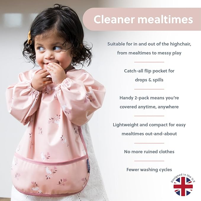 BIBaDO Mess Proof Baby Bib, 2 Pack Long Sleeve Bib, 6 month - 3 Years, Waterproof Bibs for Toddlers, Machine Washable