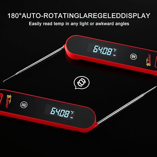 • Waterproof & Smart: KULUNER thermometer is IP67 waterproof, so you can easily rinse it off under the faucet after use (no dishwasher needed). It also lets you switch between °C and °F with a breeze and has a hold function to lock in readings.