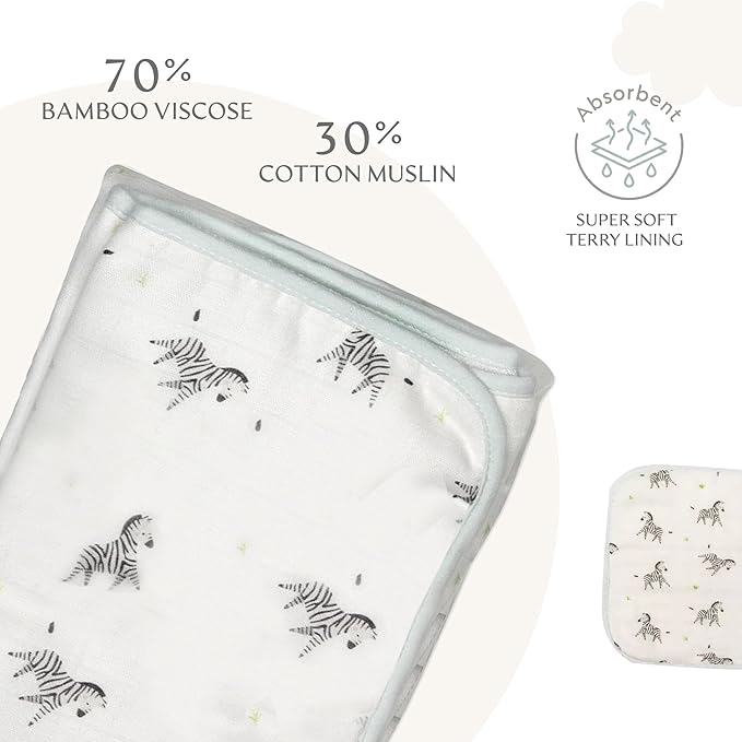 Bamboo Viscose Baby Hooded Towel & Washcloth Set for Babies and Toddlers, Soft & Absorbent, 70% Viscose from Bamboo, 30% Cotton Muslin - Imported (Zebra)