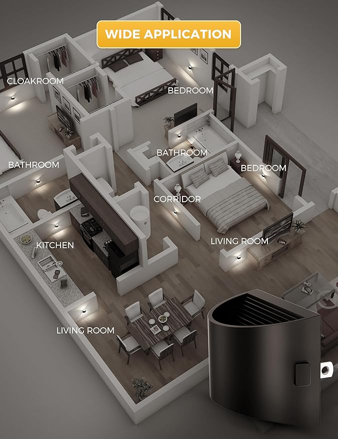 - Unique Design -- Featuring a black cylindrical minimalist frame. The stylish and sophisticated outlook of night lights does not block the bottom outlet for other devices.