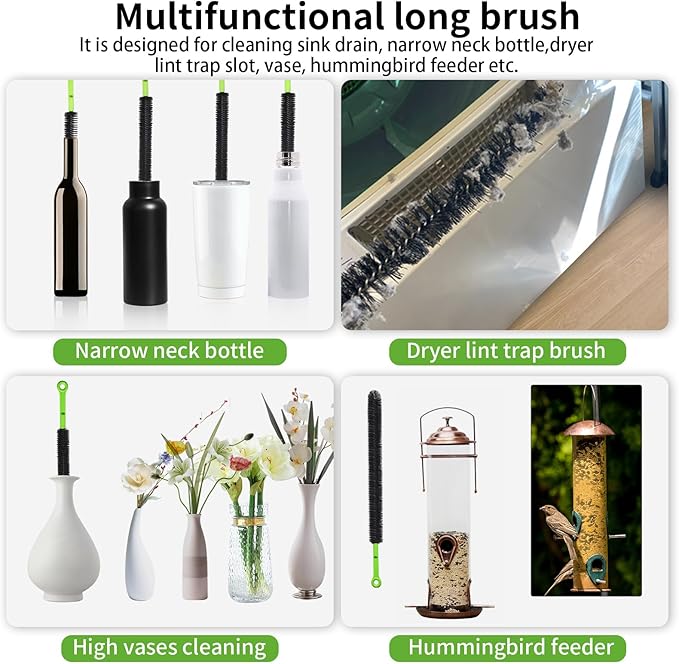 - 【Bottle Brush】The length of 17" is easy for you to clean the bottom of the bottle with narrow neck and tall shape. You can also use it as a hummingbird feeders brush, vase brush.