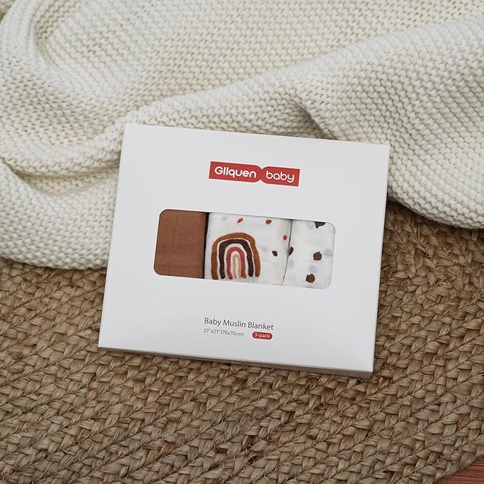 GLLQUEN BABY Receiving Blanket Boy Cotton Muslin Swaddle Blankets Girl Newborn Squares Breathable & Soft Thin Baby Blankets Cloths Double Absorbent Infant Swaddling Wrap - 3 Pack (Rainbow)