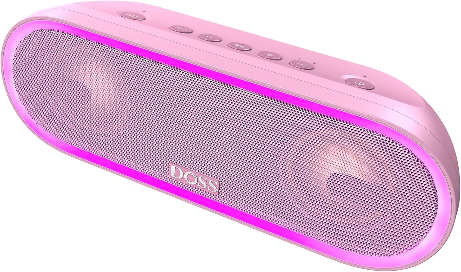DOSS SoundBox Pro+ P300 Bluetooth Speaker with 40W Stereo Sound, Extra Bass, IPX6 Waterproof, TWS Pairing, Diverse Lights Show, 20H Playtime, Portable for Party, Camping, Beach - Pink
