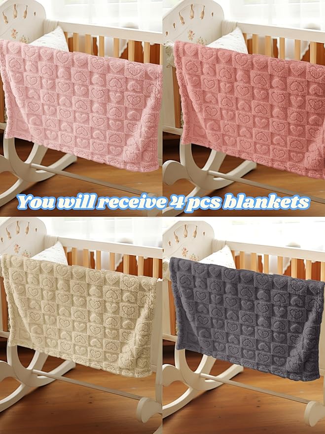 - 4 Pcs Soft Blankets: You will receive 4 different color heart checkered infant neutral blankets in a variety of colors light pink/coral/grey for girl kids. You can use it in cribs, sofas, wheelbarrows, great toddler blanket for daycare. Each fluffy blanket measures 30 x 40 inches and is perfect for your newborn kid, it is baby essentials item. But it may be a bit small for adults