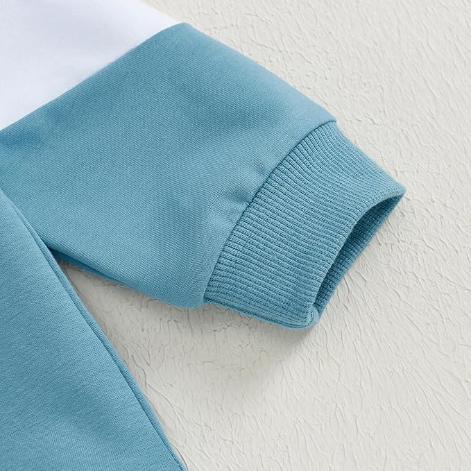 Kupretty Toddler Baby Boy Fall Winter Clothes Color Block Long Sleeve Sweatshirt Pullover Tops + Joggers Pants Outfit Set
