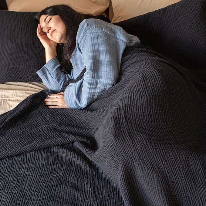 100% Turkish Cotton Muslin Blanket Twin Size 63"x91" Black, Soft 4-Layer Lightweight Thin Gauze Muslim Blankets for Summer (Black, Twin Size: 63" x 91")