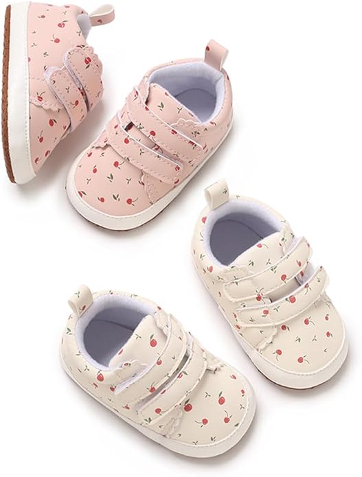 2Pairs Baby Shoes,Boys Girls Non-Slip Rubber Sole Sneakers,Unisex Infant Soft Lightweight First Walking Crib Shoes