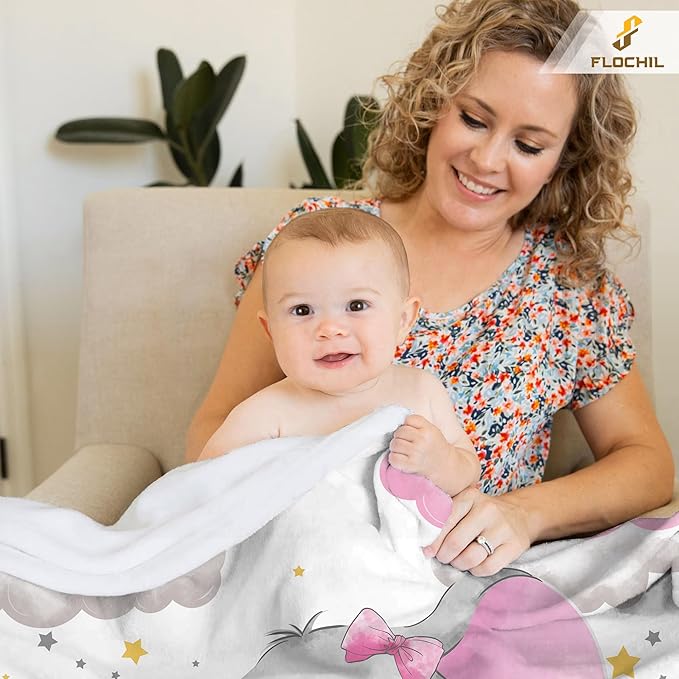 FLOCHIL Personalized Baby Blanket for Girls, Custom Baby Blanket with Name, Customized Baby Products, Gift for Baby, Newborn, Baby Shower (Elephants 4)