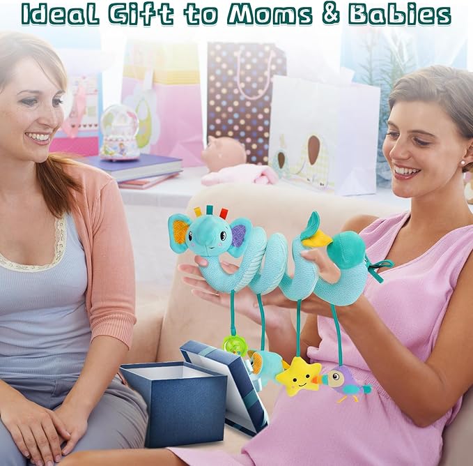 FPVERA Spiral Car Seat Activity Toy, Stroller Arch Baby Crib Hanging Toy with Rattle, Squeaky, Ringing Bell for Bassinet, Stroller, Crib for Infant Newborn Boy Girl Ages 0-12 Months