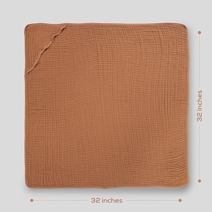 Muslin Hooded Baby Towels for Newborns, 32"x32", 100% Cotton – 6 Layers Super Soft Absorbent Breathable, Baby Bath Towel, Toddler Bath Towel – Pack of 2