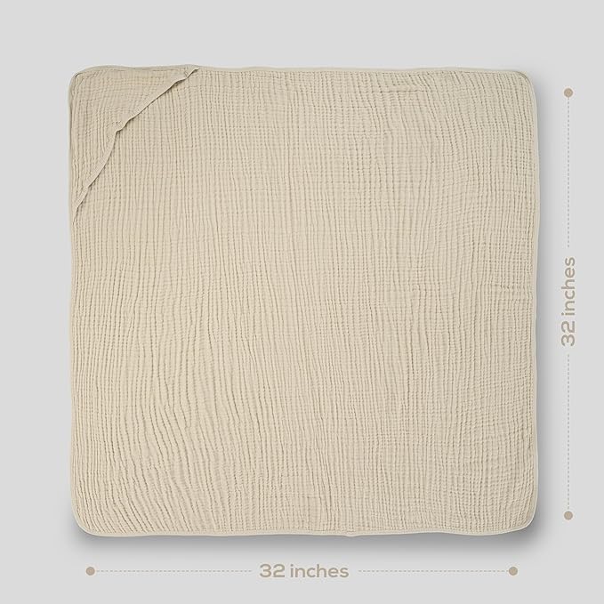 Muslin Hooded Baby Towels for Newborns, 32"x32", 100% Cotton – 6 Layers Super Soft Absorbent Breathable, Baby Bath Towel, Toddler Bath Towel – Pack of 2