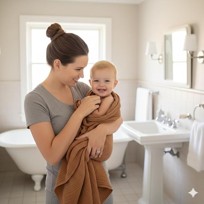 - Super Absorbent: Our muslin fabric is not only soft but also highly absorbent, ensuring your baby dries off quickly and comfortably.