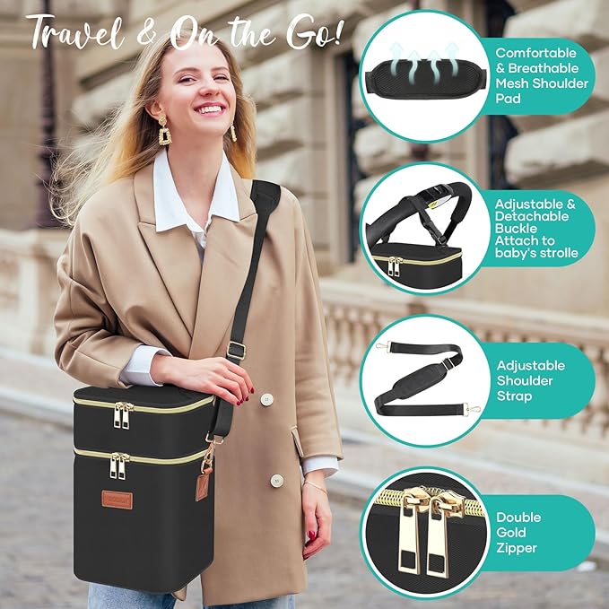 - On The Go & Travelling For Moms: The Top adjustable & detachable buckle can easily attach to the baby's stroller, and the adjustable shoulder strap with a soft pad keeps your shoulders comfortable, release your hands, and easy to carry or transport when you have a picnic, traveling, shopping, or take an airport. A must-be baby essential gift to working moms or busy women stores breastmilk for nursing babies.