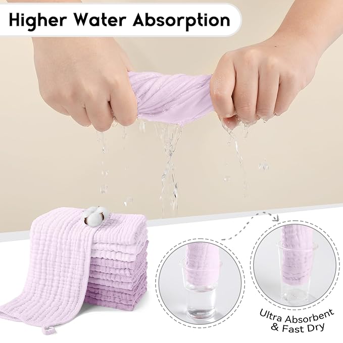 - Care Without Hassle: Pre-washing technology effectively reduces the shrinkage and reinforced edges prevent unraveling, which ensures the baby burp cloths can be machine washed and dried at low temperatures, it will still in shape and even get softer after washing several times. We care not only for babies, but also for busy parents!