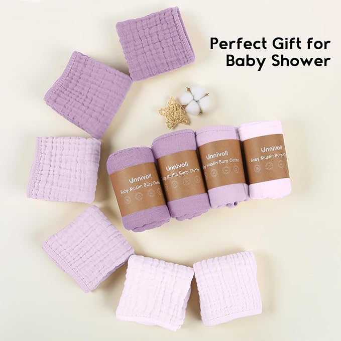 - Safety Comes First: Made from 100% premium quality cotton,Unnivoll muslin burp cloths is certified to meet Consumer Product Safety Commission (CPSC) guidelines, eliminate all potential risks and provide a soft, breathable, cloud like comfort for your little one. The natural muslin is also suitable for all skin types including sensitive and delicate skin, perfectly use on the face, hand and body.