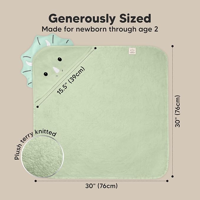 KeaBabies Hooded Baby Towel for Newborn - Viscose Derived from Bamboo Large Baby Bath Towels with Hood for Boys, Girls, Toddler, Extra Absorbent & Soft Newborn Bath Essentials (Triceratops, Petite)