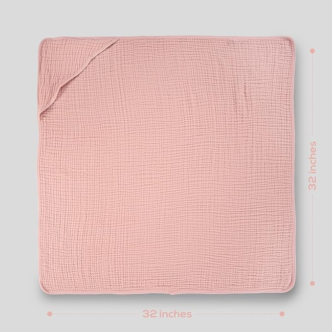 Muslin Hooded Baby Towels for Newborns, 32"x32", 100% Cotton – 6 Layers Super Soft Absorbent Breathable, Baby Bath Towel, Toddler Bath Towel – Pack of 2