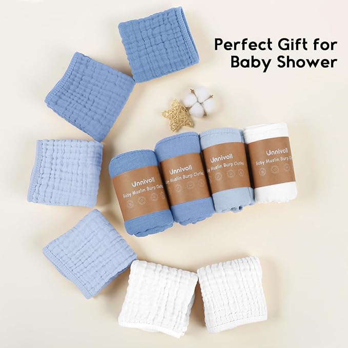 - Safety Comes First: Made from 100% premium quality cotton,Unnivoll muslin burp cloths is certified to meet Consumer Product Safety Commission (CPSC) guidelines, eliminate all potential risks and provide a soft, breathable, cloud like comfort for your little one. The natural muslin is also suitable for all skin types including sensitive and delicate skin, perfectly use on the face, hand and body.