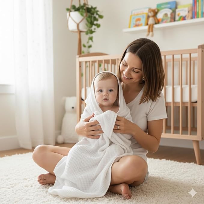 - Super Absorbent: Our muslin fabric is not only soft but also highly absorbent, ensuring your baby dries off quickly and comfortably.