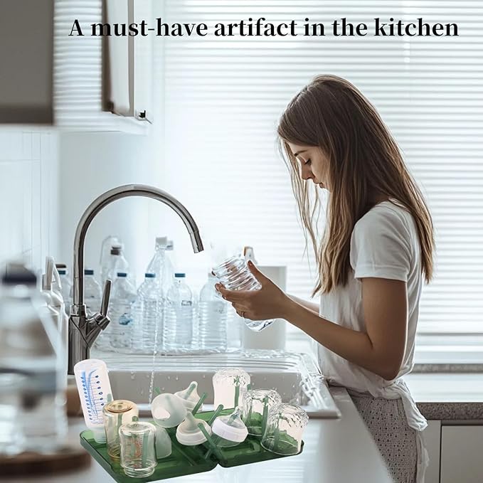 - ★Space Saving Bottle Drying Rack:Foldable bottle drying rack allows you to dry as many parts as possible in the upper compartment without taking up much space.When not needed, it can be folded up and placed in a small corner.