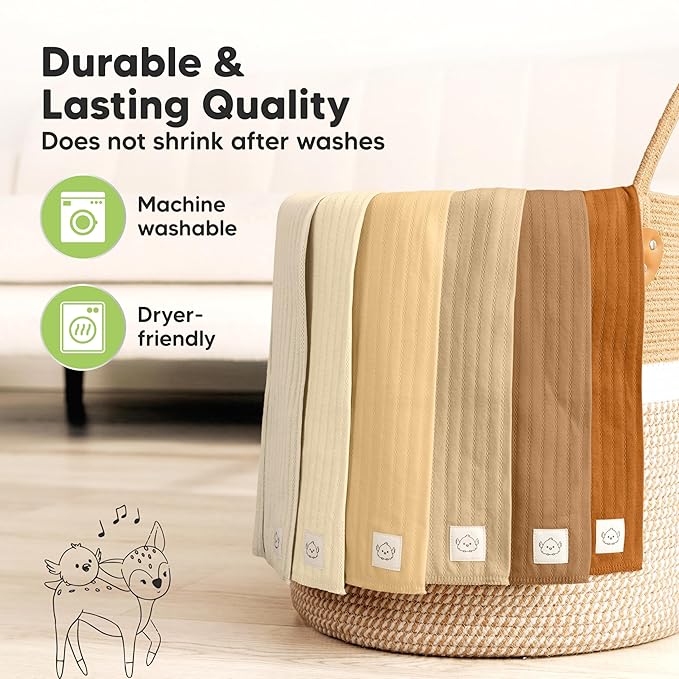 - Durable - Our machine washable & dryable burping cloths for babies are intricately made for everyday use. Loved by modern parents for their lasting quality, the colors, softness & absorbency of these baby essentials remain even after multiple washes.