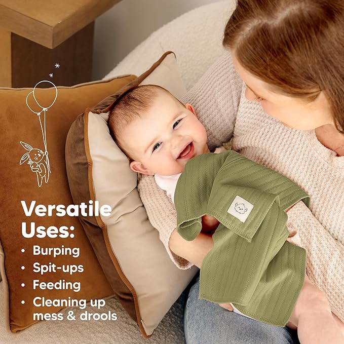 - Durable - Our machine washable & dryable burping cloths for babies are intricately made for everyday use. Loved by modern parents for their lasting quality, the colors, softness & absorbency of these baby essentials remain even after multiple washes.