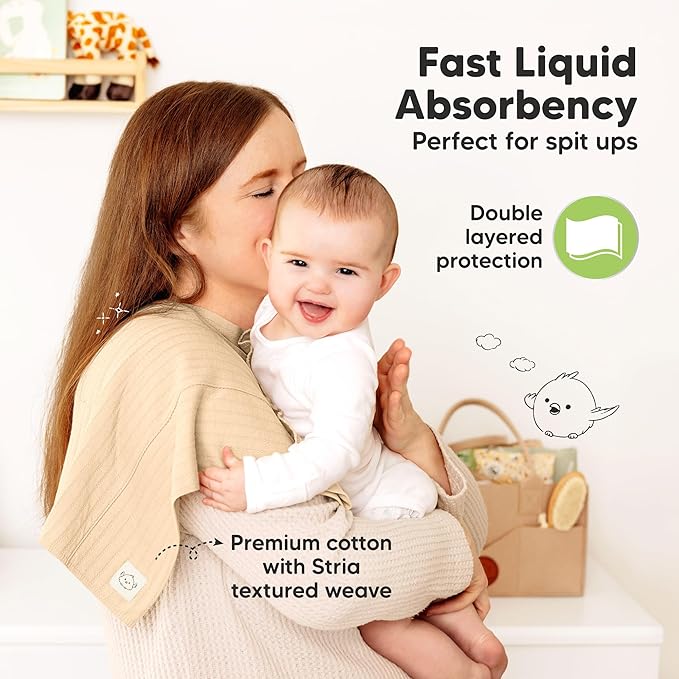 - 100% Organic Cotton – Enjoy a calming burping experience with KeaBabies Shea Stria Baby Burp Cloths. Made from organic cotton (GOTS Certified CU 1042833), with dual layers and high absorbency, they’re soft on skin and protect clothes from stains.