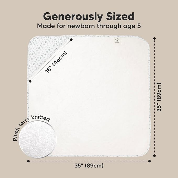 - Large and Durable Hooded Baby Bath Towels – Measuring 35" x 35", KeaBabies Hooded Baby Towels for newborn are built to be long-lasting even with repeated washes. The soft baby hooded towel can be use as your newborn grows into a toddler and up to age 5.