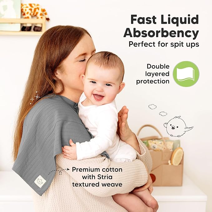 - 100% Organic Cotton – Enjoy a calming burping experience with KeaBabies Shea Stria Baby Burp Cloths. Made from organic cotton (GOTS Certified CU 1042833), with dual layers and high absorbency, they’re soft on skin and protect clothes from stains.