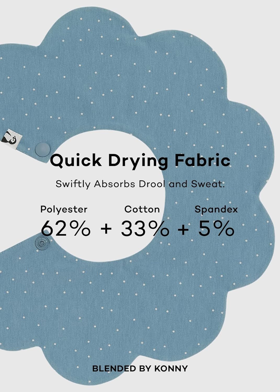 - Dribble pad and bib in one: This multi-purpose bib is made of the Konny Baby Carrier fabric that has a soft, yet firm feel with quick absorption / drying functions.