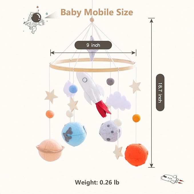 Baby Crib Mobile for Boys Girls | Felt Space Nursery Mobile Wooden Mobile for Crib | Astronaut Space Theme Nursery Bed Decoration Baby Mobile for Crib | Gift for Newborn Nursery Decor