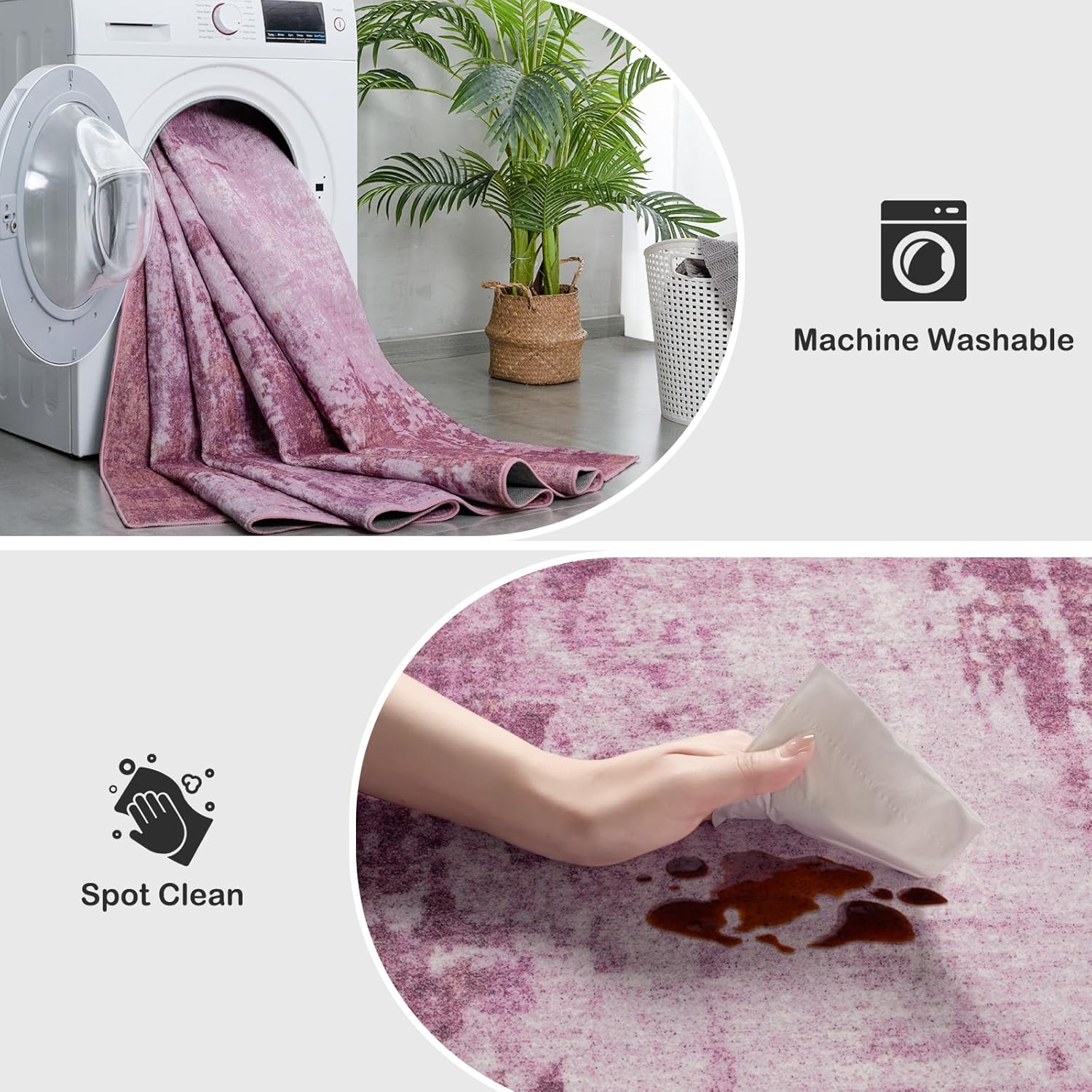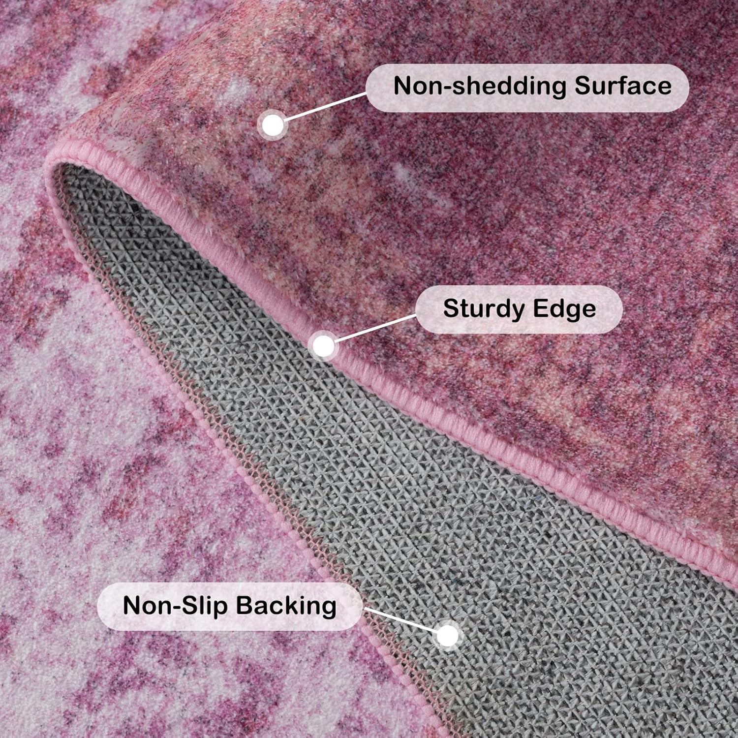 Kelarea Living Room Rug, 6x9 Rug Modern Abstract Washable Rugs Pink Faux Wool Vintage Carpet, Non Slip Rugs for Bedroom, Dining Room, College Dorm, Kids Playroom, Home Office