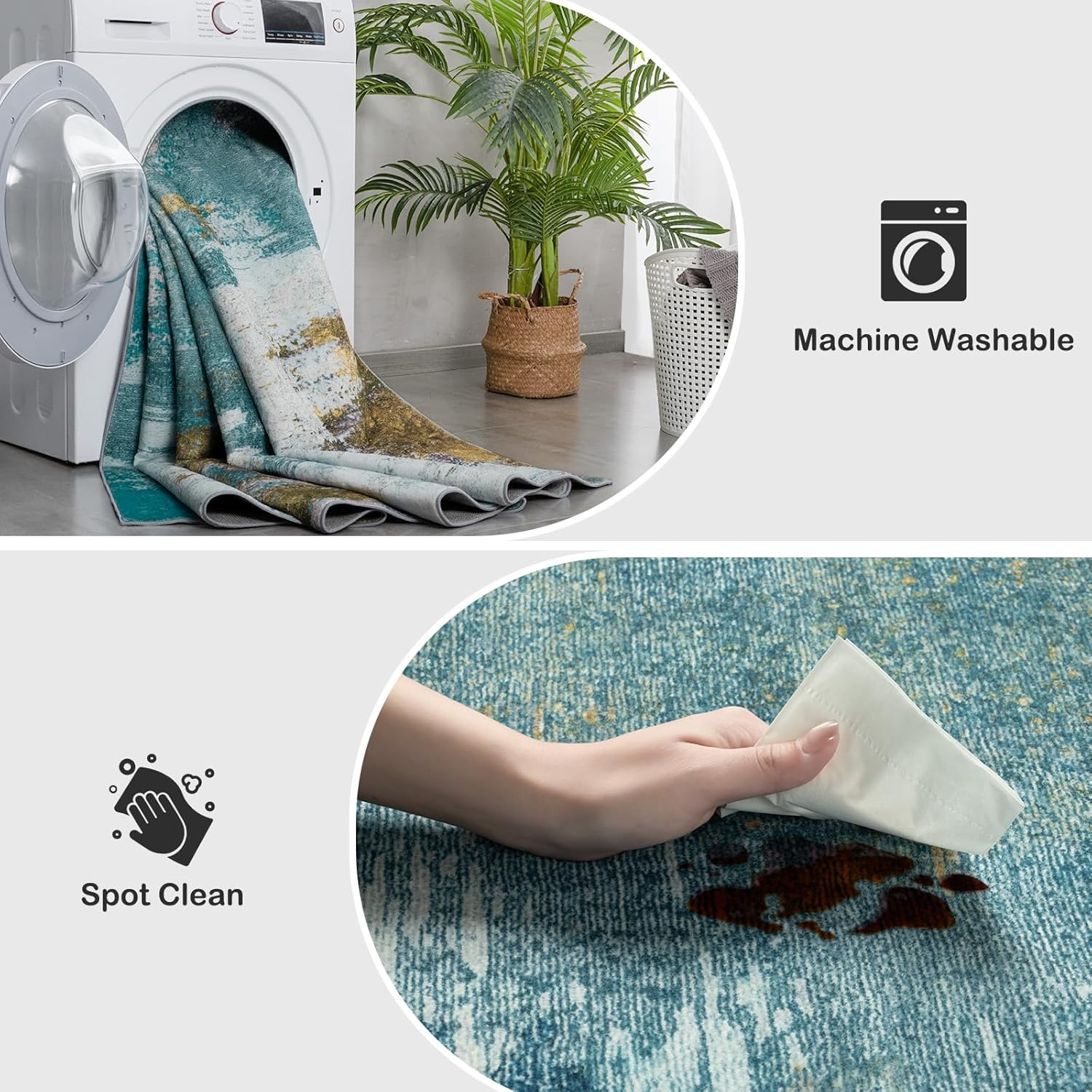 - Machine Washable Convenience: This modern abstract rug is fully machine washable for effortless cleanup while maintaining vibrant colors and shape. Resists stains, shedding, and daily wear in high-traffic zones like kitchens and playrooms