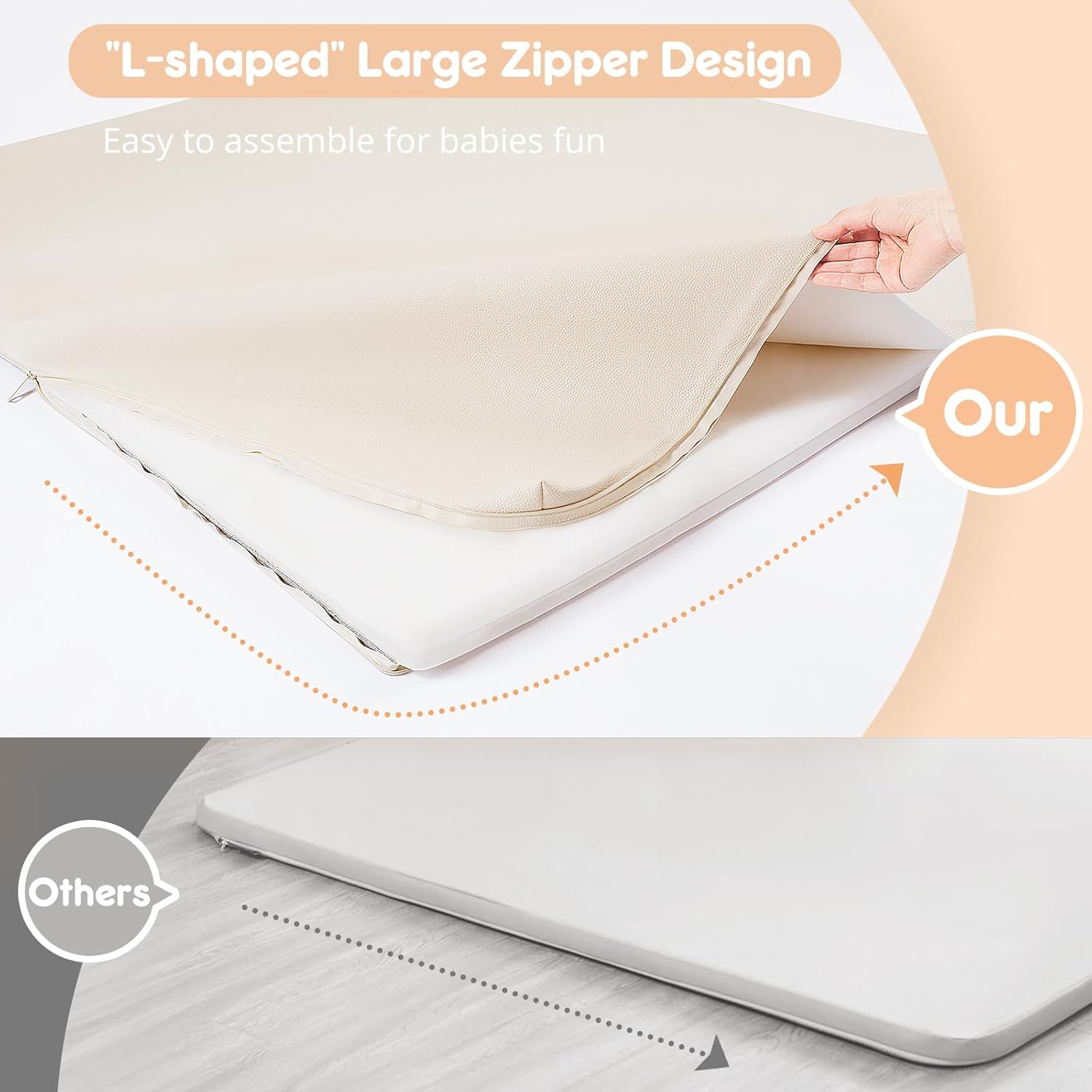 - Durable Premium Design:The cover of the baby mat is made from super soft non-toxic PU leather, giving you peace of mind about safety. And the surface is waterproof and easy to clean, which is a huge bonus when dealing with the messes babies make