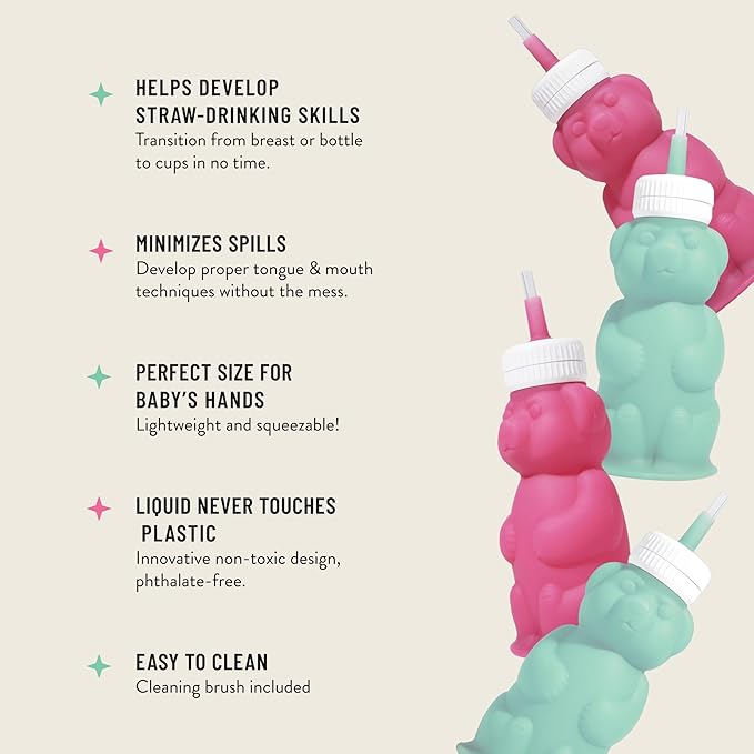 - ππππ πππππππππ, πππππππππ ππππππππ: Beary has an easy-grip texture and is the perfect size for your babyβs hands! This baby straw cup is sturdy, durable, and toddler-tough for all the tilts, leans, and drops that can come with straw training cup activities. Plus our bear straw cup for baby is un-bearably cute!
