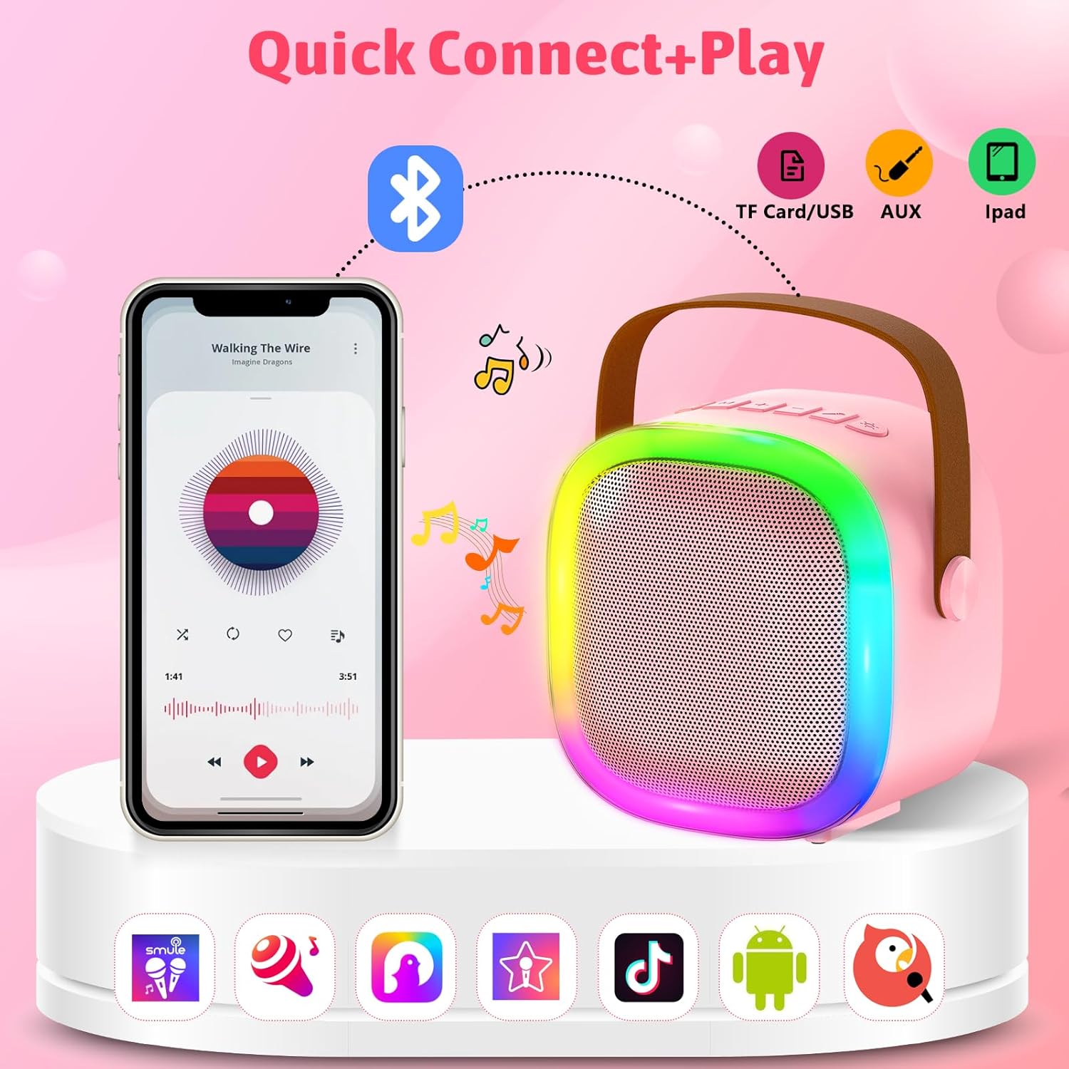 - 【Compact and Portable】Mini kids karaoke system is designed with a durable handle,which is lightweight, wireless and highly portable.Perfect for family gatherings, birthday party, school activities,travel etc.Ensuring endless fun and creativity for children while the colorful LED lights sync to the music.Ideal Christmas gift for girls 3 4 5 6 7 8 9 10 11 12 years old